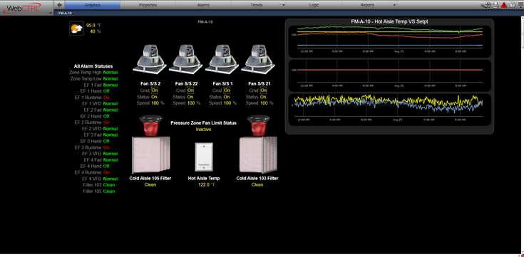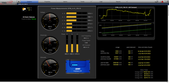 Power consumption and demand are in the forefront of any data-related facility design and operation. WebCTRL’s reporting capabilities extracts data from the site's 240 submetering devices that instantaneously monitor over 5,280 individual points of power feed data. This data is organized for operator dashboards and rollup graphic trending displays that help Global [X] Digital make the right decisions for their production operations.