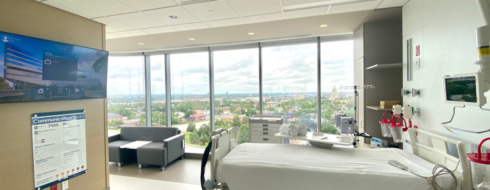 The 450,000 sq ft, eight-story North Tower features 144 patient rooms, 32 operating rooms, and an Intensive Care Unit, which does not include the basement. Various floors will house OU Health Stephenson Cancer Center patients for treatments and therapies. The North Tower will provide additional technology and capacity for patients of the University of Oklahoma Medical Center Level 1 Trauma Center. In consideration of patients and their family’s experience, rooms were built to allow extra space for family members and large medical teams. The North Tower has large floor-to-ceiling windows that bring natural light into patient rooms along with views of either the state capital, downtown Oklahoma City, or the OU Health Center campus.